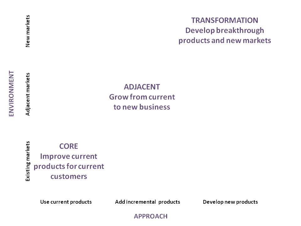 Adjacent – These projects expand into new business areas that are incremental or adjacent to the current offerings. They are aimed at new customers or markets close to the existing customer base.
